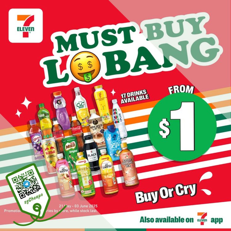 Must-buy lobang drinks from $1! Stock up on 17 irresistible drinks — perfect for cooling down anytime, anywhere. Refresh, recharge, and repeat! Head down to your nearest 7-Eleven today!