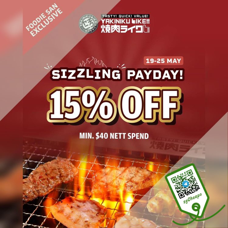 PAYDAY PROMO Pamper your tastebuds this payday with a feast fit for royalty — from 19 to 25 May, existing Foodie San members can enjoy an exclusive 15% OFF with a min nett spend of $40! Dig into your favourites and save while you indulge