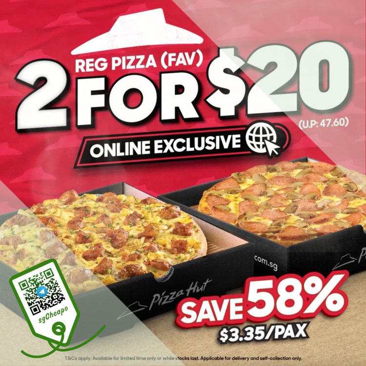 Pizza Hut’s 2 for $20 promotion lets you munch on TWO regular pizzas and choose from six flavours in the Favourites range for just $20 (usual price: $47.60). This unbeatable deal is available across all Pizza Hut outlets, for both delivery and self-collection. There’s no better time to flex your feast than now!