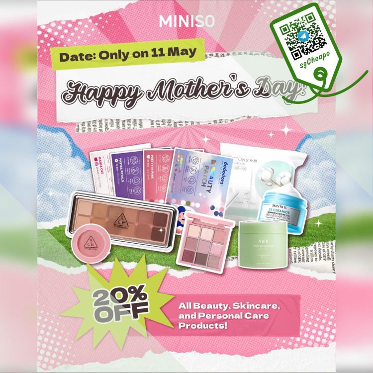 【Mother’s Day Special at MINISO SG】On May 11, enjoy 20% OFF all beauty, skincare & personal care items—including 3CE makeup, masks, serums, shampoos & more—only at our PLQ store