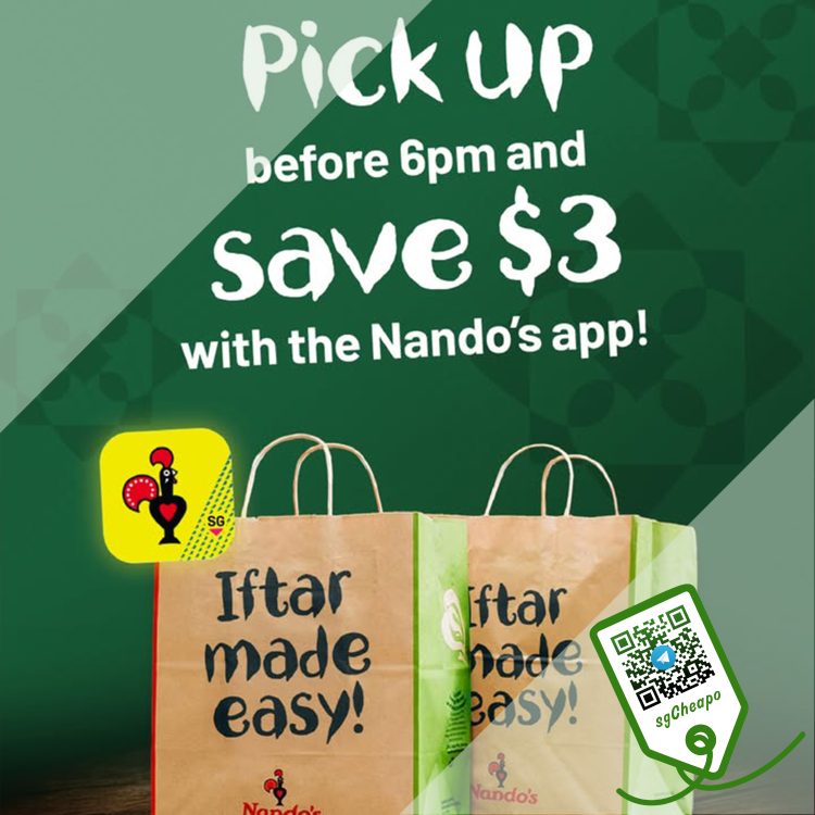 Iftar but make it easy. Apply promo code on the Nando’s app when you pre-order for pickup before 6pm from 1 March – 31 March 2025! Enjoy $3 off your total bill with a minimum spend of $30.