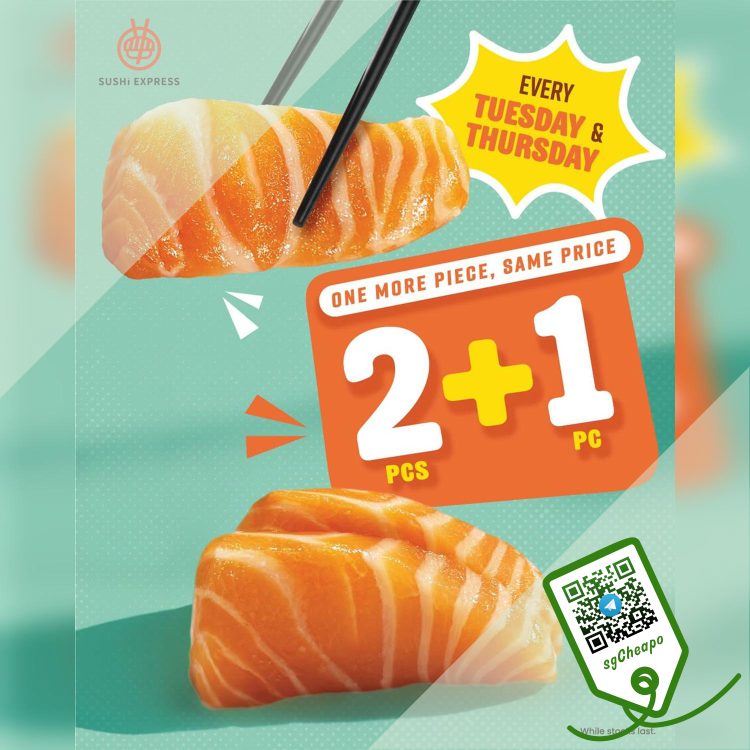 [Sushi Express ] 2+1 Salmon Sashimi every Tuesday & Thursday!